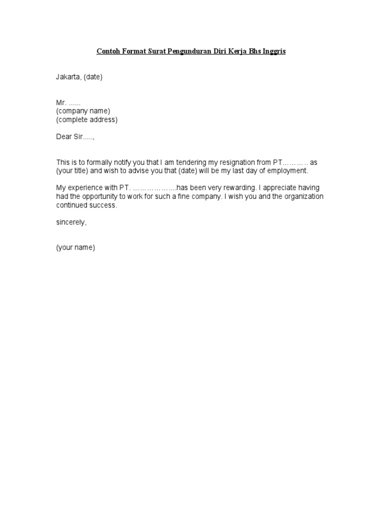 Contoh Format Surat Pengunduran Diri Kerja Bhs Inggris
